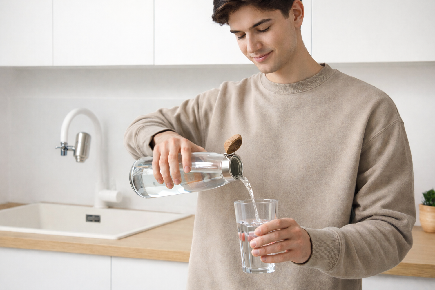 Le filtre agit directement à la source : pas d’attente, pas de remplissage, pas de place prise dans le frigo.